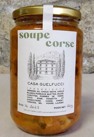 Oignons, ail, choux verts, choux blancs,blettes,celeri,carottes,pomme de terre, coco, roses, panzetta et charcuterie corse,piment, tomates, sel, poivre, laurier.